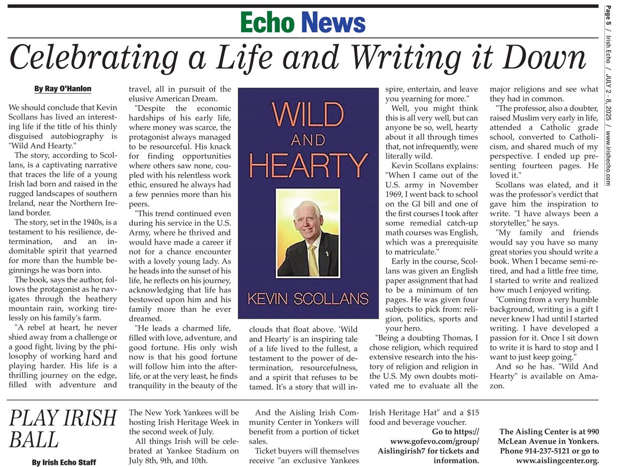 Denville’s Kevin Scollans turned a lifetime of memories and experiences into his first book, Wild and Hearty, a memoir that traces his journey from rural Ireland in the 1940s to a successful and deeply rooted life in America. The book isn’t just a life story, it’s about staying strong, not giving up, and going after the American Dream.